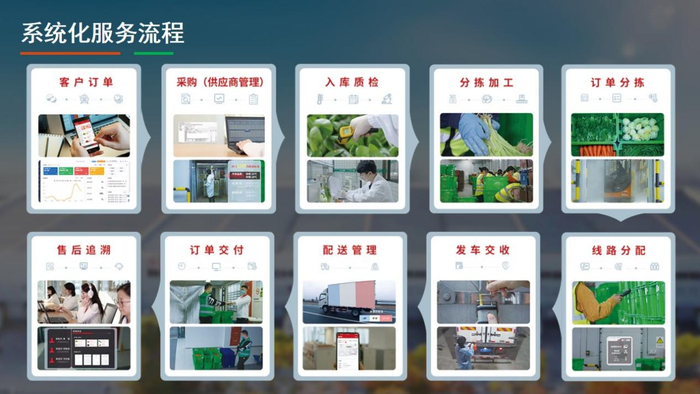 过去生鲜供应链这样的传统的基础行业,系统化覆盖率相对落后,近年来得益于B2C电商、B2B电商、冷链物流的发展,越来越多的生鲜供应链企业的数字信息系统也完备起来了。“光明都市菜园”也搭建了自己的数字化采购和数字化物流系统,也是上海第一家蔬菜可追溯系统的试点单位,从源头采购、到入库、食品安全检测、理货分拣、客户下单、集中配送等都利用信息化系统高效的串联了起来,多年来一直坚持数字化提高供应链的运营效率,降低运营成本,为客户降本增效。