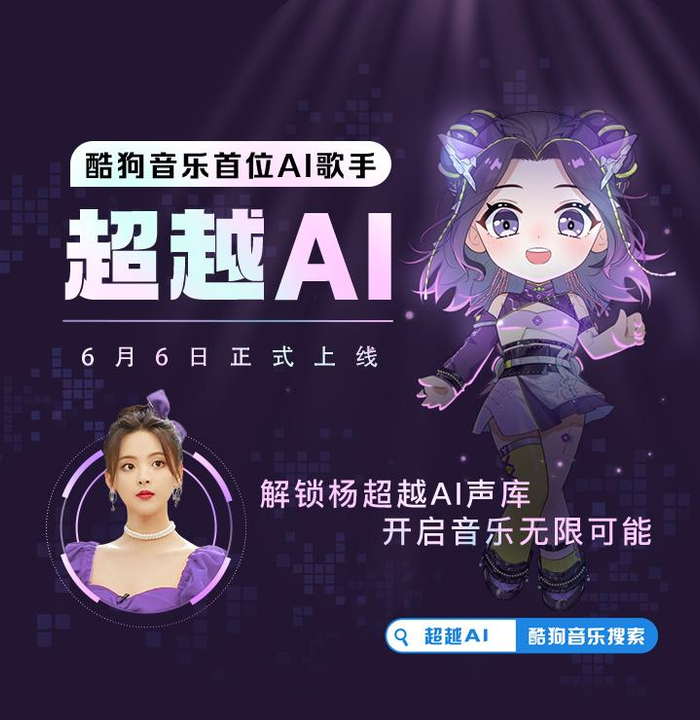 6月6日,酷狗音乐携手杨超越在微博官宣了一项AI领域的重磅合作:以杨超越真人声音打造的“超越AI”作为酷狗首个AI歌手正式上线,依托于AI歌手的“超级订阅”功能也随之亮相。未来还会有更多依托真人或虚拟声音打造的AI歌手陆续上线,丰富“超级订阅”的产品形态。