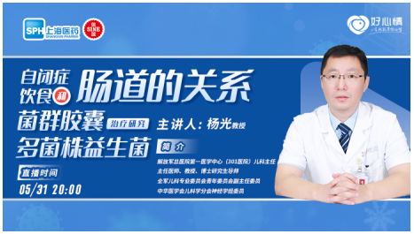 2022年5月31日,在“六一”儿童节来临之际,上药信谊微生态联合好心情互联网医院邀请到解放军总医院第一医学中心(301医院)儿科主任杨光教授做客直播间,通过多角度的分析,进一步为有需求的家庭解析有关自闭症儿童的最新研究进展及相应的解决方案。