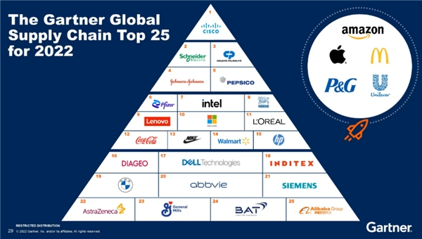 在供应链时常成为瓶颈的当下,了解哪些企业拥有最佳供应链实践愈发必要。近日,知名数据研究机构Gartner公布了2022年全球供应链TOP 25最新排名,联想集团首次进入前10,位居第9,排名较去年提升7位。值得一提的是,联想集团是中国乃至亚太地区唯一上榜的高科技制造企业。