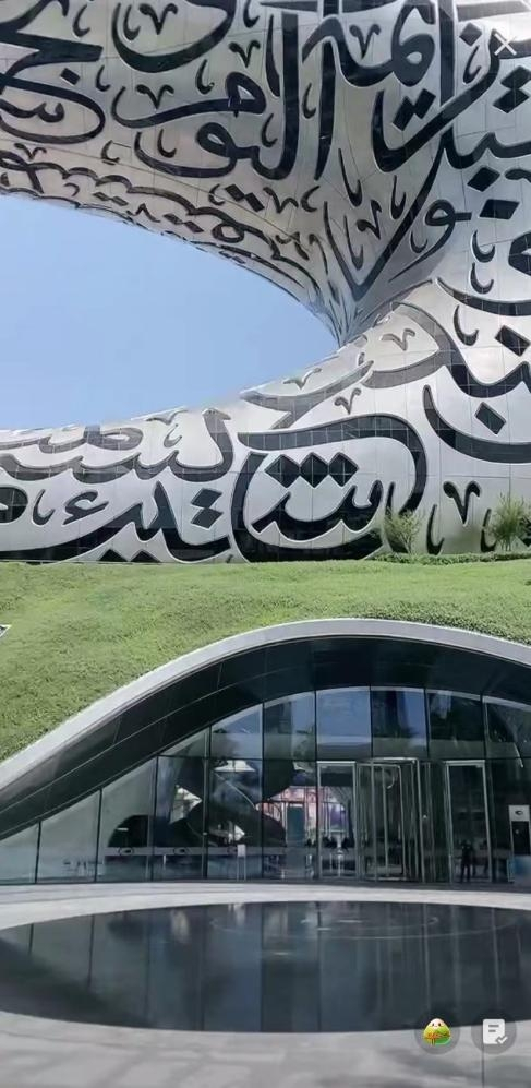 老常细心发现七层穹顶上的设计非常有阿联酋特色。确实,建筑顶部及外部的阿拉伯书法,是博物馆最有视觉冲击的地方之一。据介绍,这些语录引用自迪拜酋长关于未来的名言,中文大意为:“未来属于那些敢想敢做的人,所以,别再等待,敢于去创新”、“人类的真谛在于创新,生命的更新,人类的进程都离不开创新。”这再次向世界展现了迪拜勇于创新的恒心与坚守。