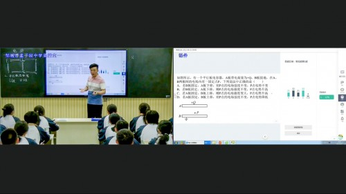 在物理课上,孟子湖中学的张玉峰老师借助大数据支撑的智慧纸笔系统,通过学生抢答、随机选人、截屏提问等信息化手段,实时掌握学生的课堂学习、课堂参与情况,及时调整课堂预设,进行精准指导,开展灵活多元的师生互动、生生互动,促进了学生对于知识探究的主动性。同时,将学生置于课堂中央,让学生动起来,让深度学习真正发生,让核心素养真正落地。
