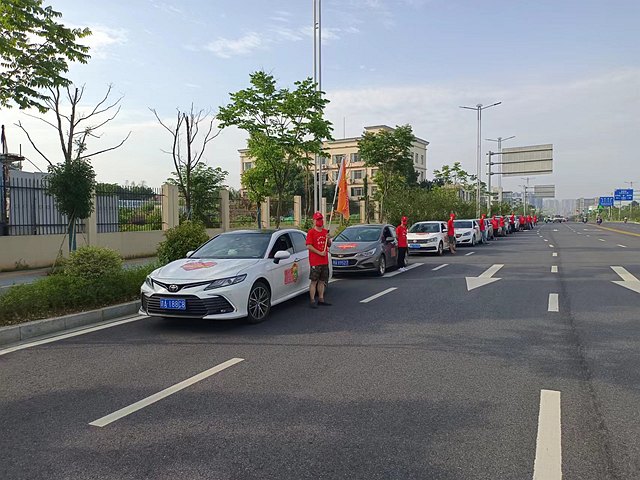 6月7日早上6点多,爱心送考车队已经整装待发,车身也早已贴好“爱心助考服务车”的车贴。据悉,爱心司机激动地挥舞着高考加油站的旗帜,以及“道道全会 道道全对”的横幅,都为考生送出了一份真诚的祝福,而每一句祝福都能给考生带来精神寄托、送去爱的陪伴。在莲塘一中考点现场,参与公益活动的经销商团队,免费为考生家长提供护考物资,“道道全对”的祝福语深受考生家长喜爱。