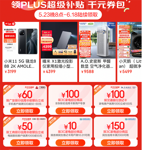 眼下正值京东电器618,越来越多的消费者也开始趁着优惠焕新家里的电器,开始买买买模式。为给大家提供更好的购物体验,今年618期间,京东电器带来了30天价保、180天只换不修、全场至高24期免息等权益。即日起至6月18日,在京东购买家电产品,使用交通银行信用卡支付,可领取满1000元减100元优惠券;至6月30日,购买电器产品使用民生信用卡支付可领取满2000元减150元优惠券,让大家都可以轻松入手心仪的产品。