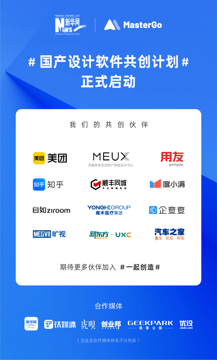 共创计划提出后,已有包括美团设计委员会、百度移动生态用户体验设计中心、用友网络、知乎、顺丰同城、度小满、旷视科技、新东方、汽车之家、自如、雍禾医疗、企查查等各行业头部的团队和企业均与MasterGo完成签约。