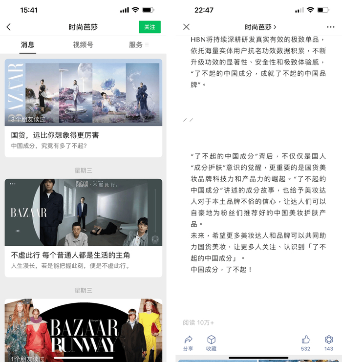 《时尚芭莎》发布的IP视频及CG大片,全网总曝光量已超8000W,公众号文章《国货,远比你想象的厉害》成为时尚美妆行业罕见10W+爆款文章,吸引时尚圈大量关注。