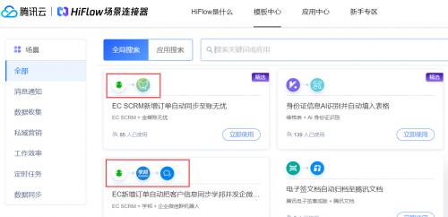 随后,腾讯云宣布搭建“HiFlow场景连接器”,并于本月初正式对外发布。“HiFlow场景连接器”旨在通过一个系统来解决企业办公场景下,多系统连接、多应用切换和数据自动化的问题。作为CRM市场领先品牌,EC成为首批甄选伙伴。