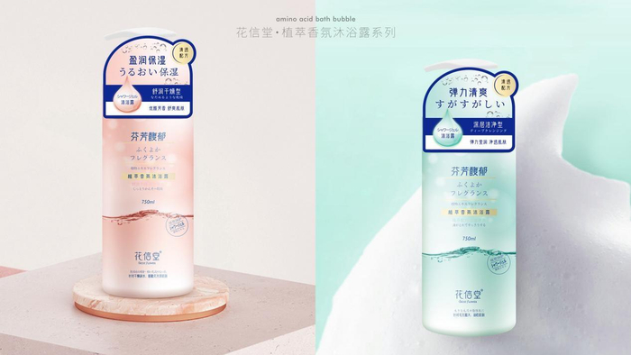 花信堂植萃香氛沐浴露分为2款类型,盈润保湿型适合中、干性皮肤,一步到位解决因皮肤干而导致的起皮瘙痒问题,萃取多重植物精华,改善肌肤天然屏障功能,提高肌肤保湿度。治愈系香水型香氛,花果香辅以高级木质调,卸下疲惫,洗后盈润嫩滑,易冲洗不假滑,浴见水润小香肌。