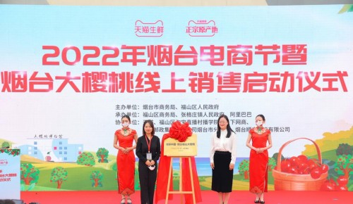又是一年樱桃成熟时,伴随着丰收的喜悦,6月7日,承载无数果农期待的“2022年烟台电商节暨烟台大樱桃线上销售启动仪式”,在福山区大樱桃博物馆广场顺利举行。这场由烟台市商务局、福山区人民政府主办,福山区商务局、张格庄镇人民政府及阿里巴巴承办的盛会,通过与天猫等线上平台联动,再一次将烟台福山大樱桃推向全国,进一步助力农产品上行。