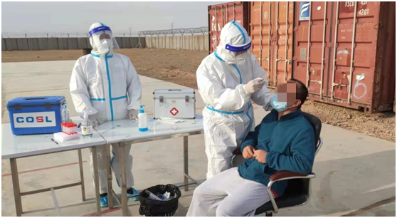 米桑油田位于伊拉克东南部,毗邻伊朗边界距巴士拉市175公里,距首都巴格达350公里,是环境最恶劣的油田之一 ,而北大医疗海洋石油医院医疗队就在米桑油田工作。由于新冠病毒肆虐,许多米桑油田中资企业一直面临防疫和保障作业安全的双重压力。北大医疗海洋石油医院海外医疗队积极研判、未雨绸缪,在做好常态化疫情防控的基础上,开设发热门诊,筹划组建了核酸采样室和PCR实验室,为现场疫情防控提供了强大的保障。