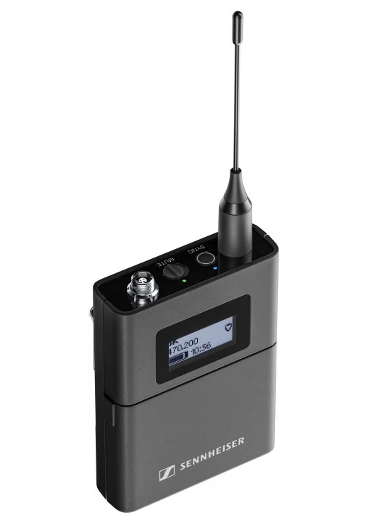 腰包式接收机有 3 针或 3.5 mm (1/4”) 插口连接器,可连接所有兼容数字发射机的森海塞尔领夹式和头戴式麦克风、Neumann 诺音曼微型夹式麦克风以及乐器线。这款腰包式麦克风配备可编程静音开关,并为吉他手和贝斯手提供了模拟线缆功能。