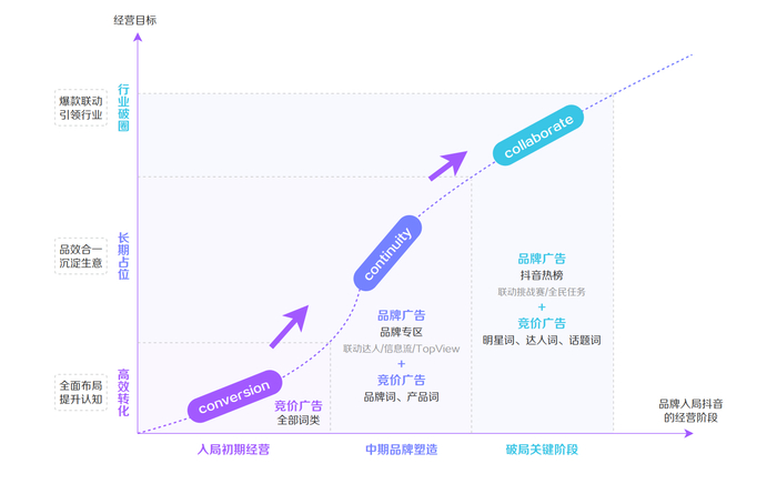 第一步,对于刚刚入局抖音的电商生意、还处在经营初期的品牌,这时用户知道品类,但可能叫不出品牌名字,需要主动和用户沟通促进转化(CONVERSION)。