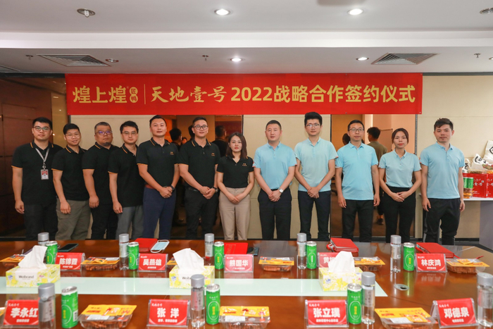 4月13日,天地壹号与广东煌上煌食品有限公司在穗签署2022战略合作协议,开启双方的首次品牌跨界联名合作。会上,双方就如何加强全方位战略合作进行了深入探讨,本着平等互利、资源共享、优势互补的原则,双方将在产品联合销售及品牌联合推广等方面展开深入合作,为双方共同创造更大的商业价值。根据双方协议,本次战略合作将在煌上煌广东、广西以及海南约1000家门店开展,届时天地壹号与煌上煌铂金版联名款将会上市。