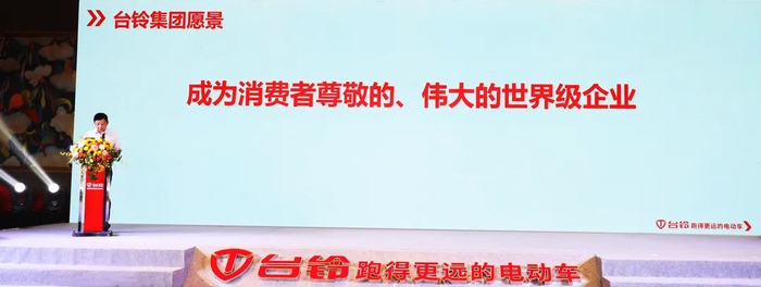 会议开始,台铃集团总裁姚立代表集团公司郑重发布了集团三年战略。“在台铃创立之初,我们就想着能做好的电动车产品,不断用创新科技满足人们对美好出行生活的向往,助力每一个人都能跑得更远。”总裁在回顾过往的时候动容地说道。