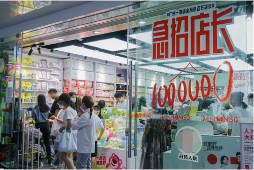 “急招1000000店长!”,名创优品主题门店出现一张“百万店长招募”海报,引发市民关注,相关话题在社媒端热度持续发酵。