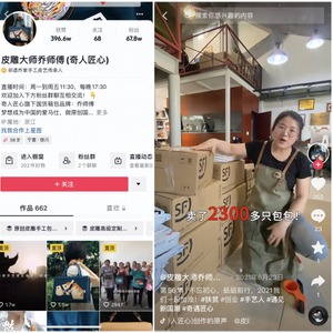 自2019年在@皮雕大师乔师傅(奇人匠心) 发布第一条做包视频以来,乔雪在两年多的时间里陆续发布了664条短视频,并在每周的周一到周五坚持一天两场直播,即便是在2020年哺乳期,她也是一边奶娃,一边不间断的开了一整年的直播,在各类品牌竞争下,当年卖出了2300多只包包。