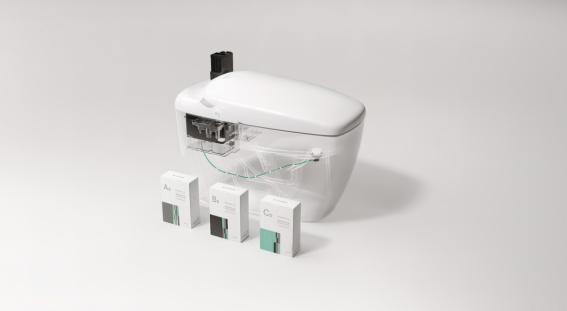 另一边的SYNSOL叁颂,是健康科技领域的新势力品牌,在去年底发布了一款能够“体检”的黑科技马桶。马桶内置了尿液检测和生物电检测模块,能全自动的采集代谢物样本进行分析,只需3分钟便可将一份详细的健康报告展示给用户,通过持续使用,能够对近30项健康指标进行精准追踪,从而帮助大家随时掌握自己的健康状况,更加及时和正确的维护健康。