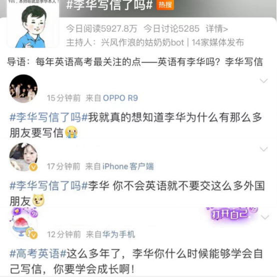 那些年帮李华写过不少信的网友纷纷吐槽:“李华,既然不会用英语写信,能不能不交那么多外国的朋友!”“你已经是一个成熟的李华了,以后学会自己写信吧!”……