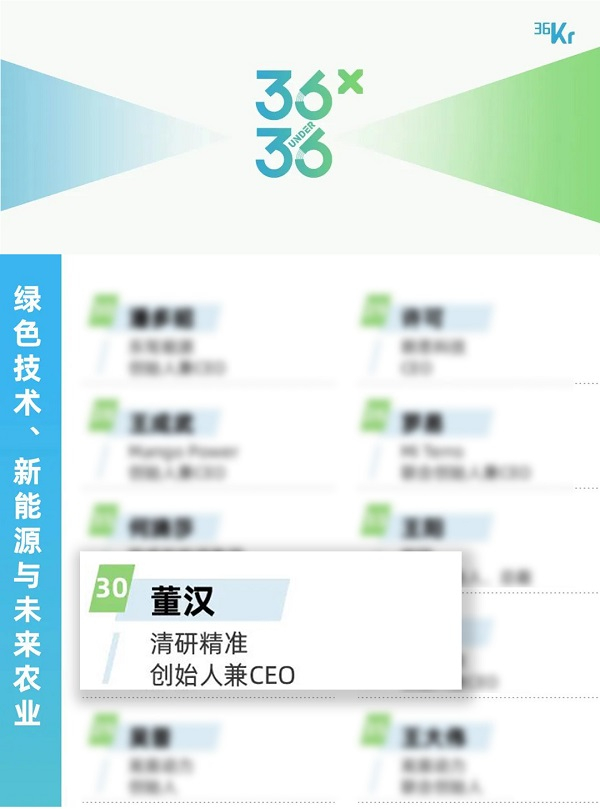 清研精准创始人董汉获选36Kr“X·36 Under 36”S级青年创业者