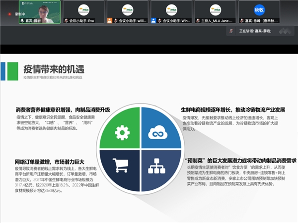 “春播”作为生鲜电商平台,长期致力于提供安心、健康、美味、新鲜的食品和食材。北京春播科技有限公司高级海外总监薛岩分享了“疫情期生鲜电商给我们带来的机遇和挑战”。薛岩表示,受国际冷链等因素影响进口牛肉价格继续保持上涨的态势。面对疫情带来的诸多挑战,如供应链的不稳定性、消费者需求的变化等,生鲜电商应对接好终端需求并做好产品规划,熟识各地政策和规定并坚持以客户为导向提供服务。她同时提到,受疫情影响,预制菜产品备受青睐,未来市场前景广阔。