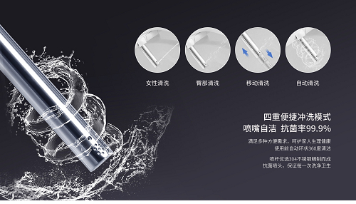 固源集团的智能马桶以女性需求为出发点,特别增加了“女性专用”模式。结合女性的生理结构特征设计女性专用喷杆,可以根据实际需要随心调整水压大小和冲洗档位,使用温水喷洗可满足女性日常生活和生理期间的特殊需求。并且座圈上带有清洗功能感应器,当人体如厕完,身边没有厕纸也无需尴尬,它的清洗功能便能立即派上用场。