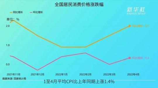 5月16日,国家统计局发布的《4月份居民消费价格指数数据》显示,受国内疫情及国际大宗商品价格持续上涨等因素影响,4月份全国居民消费价格指数(CPI)同比上涨2.1%。全国规模以上工业增加值同比增长4.0%,比1-3月份回落2.5个百分点;全国服务业生产指数同比增长0.3%,比1-3月份回落2.2个百分点。