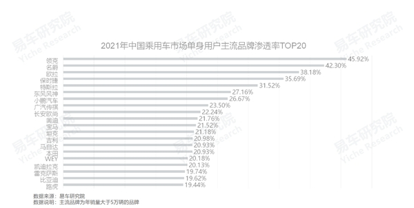 2021年,领克领衔单身车市主流品牌渗透率排行,单身车市助力部分品牌个性化变革
