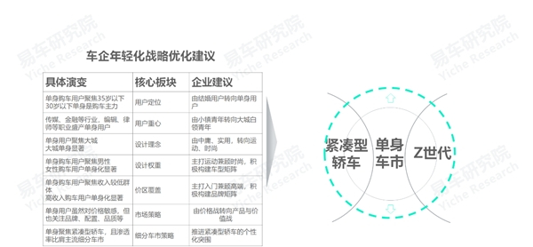 车企的产品战略,首先要解决的就是用户定位问题,再探究用户的分布重心。易车研究院调研发现,传媒、金融、互联网等行业,编辑、律师、设计等职业,不仅盛产白领,也盛产单身购车用户,意味着车企轻化战略的用户重心,由小镇青年转向青年白领;