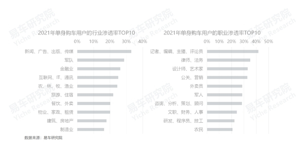 传媒、金融等行业,编辑、律师等职业盛产单身用户,助推车企年轻化战略的用户重心,由小镇青年转向青年白领