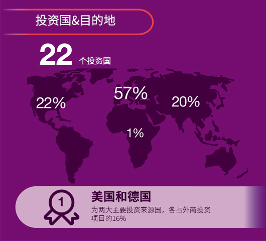 从投资行业的角度来看,最受投资者欢迎的是信息通信技术-数字化转型行业,面向该行业的投资项目占总项目的20%;随后便是汽车和摩托车行业(20%)以及化工行业(13%)。数字化和技术行业为创造就业做出了突出贡献。得益于外商投资,该领域的新增就业占2021年新增就业总量的67%。 从投资来源国的角度来看,加泰罗尼亚的主要投资国包括:美国(16%)、德国(16%)、英国(12%)、法国(11%)、日本(9%)和中国(6%)。