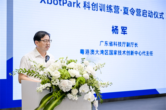 活动伊始,广东省科技厅副厅长、粤港澳大湾区国家技术创新中心代主任杨军作主题致辞,杨副厅长在致辞中肯定了XbotPark机器人基地在创新创业领域的贡献,并真切期望在粤港澳大湾区国家技术创新中心更大的平台上,更多怀揣硬科技创业梦想的前行者未来将会在粤港澳大湾区打造更多的明星创业企业。