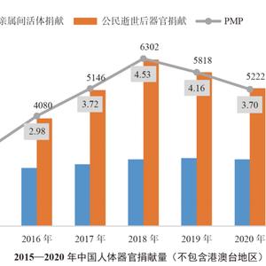 中国人体器官捐献与移植委员会主任委员黄洁夫表示,自2015年1月1日起,公民自愿器官捐献成为我国器官移植唯一合法来源,我国器官捐献与移植事业取得重大进步,2015-2020年,我国完成公民逝世后器官捐献累计完成29334例,每百万人口器官捐献率(PMP)从2015年的2.01升至2020年的3.70,器官捐献、移植数量两项指标均居世界第二位。
