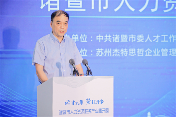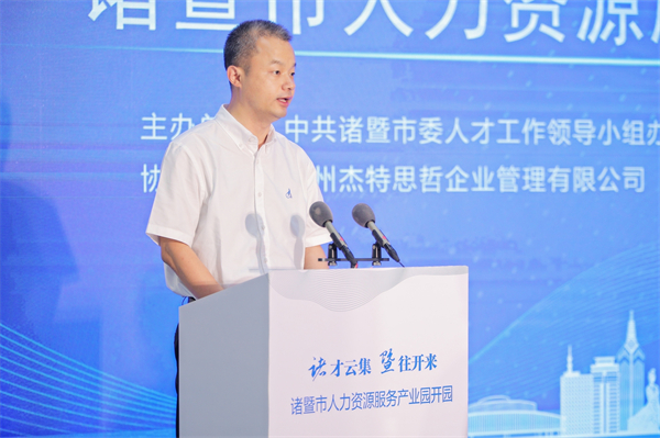 诸暨市委常委、组织部长王琤、诸暨市副市长陈文进、绍兴市人社局副局长王奋、浙江省人才发展集团党委副书记王绍伟、杰特思哲集团创始人&CEO高翔等出席开园仪式。