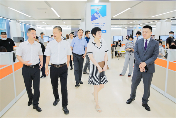 相关领导、来宾走进人力资源服务产业园,实地查看园区业务范围、功能窗口、入驻企业、人才服务等情况。
