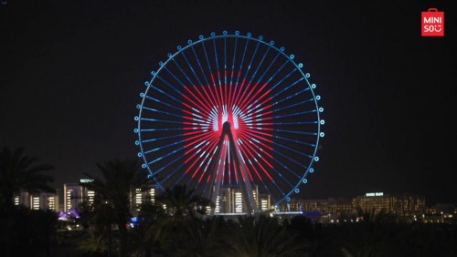 历时一个月,“LOVE 2GETHER”环球巴士巡游在最后一站--阿联酋迪拜,打造了一场最闪亮的全球许愿派对,在这个全球最大的摩天轮“迪拜眼”上,开启了一场美妙的灯光秀,巨型的笑脸符号最终汇聚成为名创优品的logo,与全球粉丝的心愿一起绽放在这夜空中。