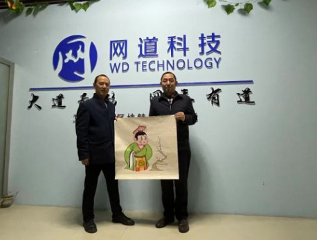非遗大师,绵竹年画第九代传人、岷元阁年画社李道春(左)先生到访网道科技交流文化数字化应用。