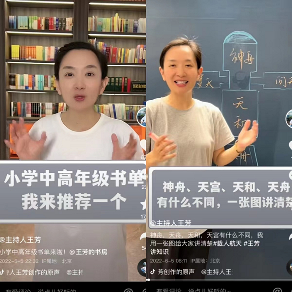 曾在北京卫视等多个电视台担任主持人的王芳,一直倡导全民阅读,最开始在抖音电商带货是卖自己的书,结果带火了别人家的书。如今她已经是一名头部图书知识达人,其抖音粉丝已突破1200万,获赞1.1亿,通过抖音电商一年售出图书超过1500万套。