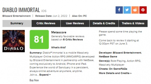 《暗黑破坏神:不朽》(以下简称“暗黑手游”)国际服正式上线后,凭借着优秀的品质直接屠了110多个国家的免费榜,成功掀起了一场玩家热潮。海外第一游戏直播平台Twitch上,暗黑手游相关直播直冲至“最多直播榜”第二名,美国登顶Appstore第一名。与此同时,全球各大媒体纷纷对暗黑手游给予了很高的评价,如Metacritic给出81分高分。