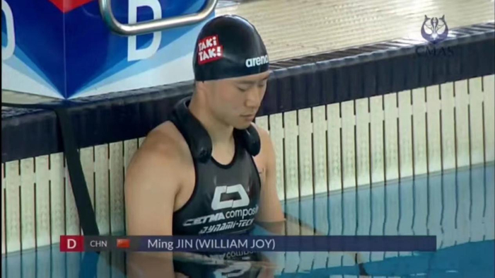CMAS世锦赛的第二个比赛日,金明在第12组,同时出场的选手均来自该领域的世界强国。他们分别是来自波兰的Mateusz Malina、来自克罗地亚的世界冠军Vitomir Maricic以及法国世界冠军选手Guillaume Bourdila。金明与众多世界纪录保持者同台竞技,是本次世锦赛的重要看点。