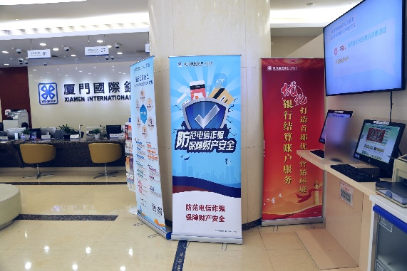 “我们充分发挥了各家分行的网点优势,在北京、上海、珠海以及福建省内一共100多个营业厅都进行了宣传。”据厦门国际银行相关负责人介绍,该行高度重视防范非法集资宣传工作,积极利用LED电子屏、视频终端等进行厅堂宣传,并在营业大厅及客户资料取阅处放置相关海报及宣传折页,设置宣传展台、横幅,主动为每位办理业务的客户送上防诈骗宣传资料,营造了浓厚的防范非法集资宣传氛围。