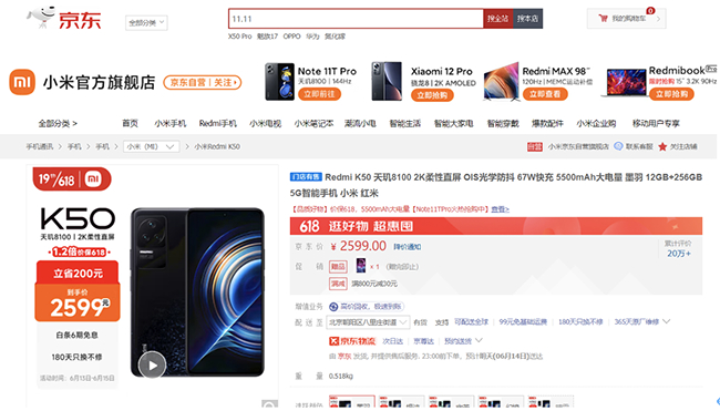 无论性价比,手感还是颜值和体验,小米都可以算得上是国产机中的佼佼者。京东618期间,身在北京的果粉有福了,登录京东即可领至高1500元的“绿色节能消费券”,并可叠加京东平台自有优惠使用,这个时候买手机真得超划算。扛起小米2022年性价比之王的Redmi K50,热度一直居高不下。搭载天玑8100处理器、2K柔性直屏、67W快充以及5500mAh大电池的Redmi K50,性价比超高的同时,在手机的散热、影像、屏幕等方面进一步优化。京东618,购12+256版本可立省200元,到手价2599元,享6期免息和180天只换不修。领到北京“绿色节能消费券”的用户,通过京东支付可再减200元,到手价只需2399元。Redmi Note11系列、Redmi K40系列、Redmi9A等系列,均支持使用城市消费券。