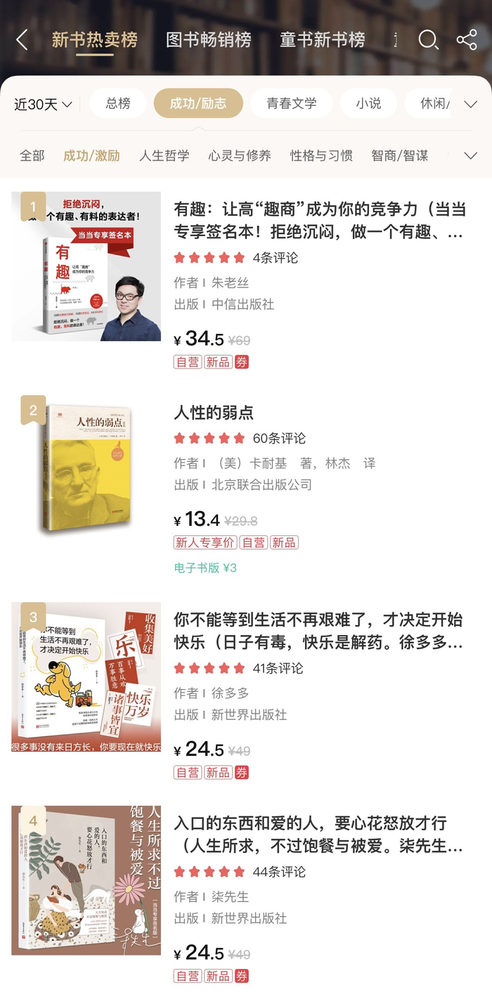 上线第三周,已经位列当当成功激励榜单的第1。