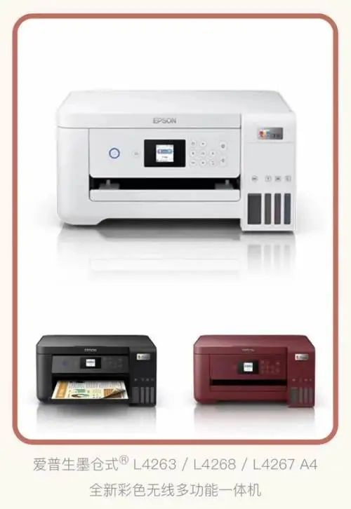 而在颜色方面,爱普生L426X系列有黑、红、白三种机身颜色可供选择(L4269/L4268黑色;L4267红色;L4266/L4263白色),经典配色,简约大气,可以满足多种家庭环境使用需求