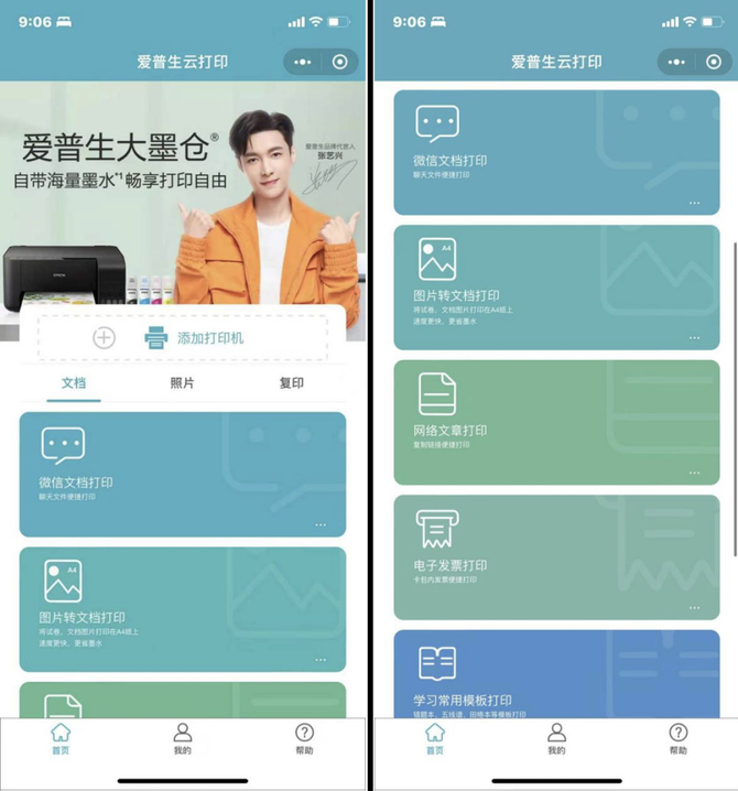 用爱普生云打印小程序实现微信内容的打印操作,打印微信文档、图片、网络文章、电子发票 等等,可以说非常方便易用。