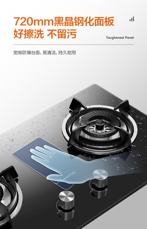 这款燃气灶采用的是720mm黑晶钢化面板,宽敞防爆台面,好擦洗的同时且不会留污渍。万和在燃气灶方向还研发了智能安全控制技术,它是由微处理控制器、传感器模块、燃气阀模块、WiFi通信模块和报警五大安全装置版块组成,传感器模块可以快速检测锅底温度、燃气灶上是否有火焰以及燃气灶周围的燃气浓度等多种危害因素,并与用户通过WiFi通信模块进行人机交互,有效地保障用户的安全,这也极大地解决了行业关键技术难题。
