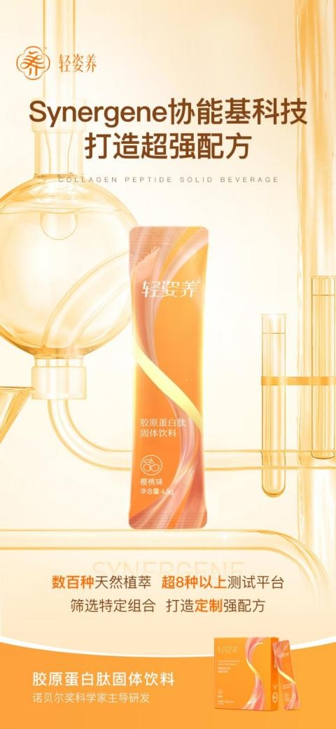 轻姿养Baby肽是一款可以高效补充胶原蛋白的口服健康产品。轻姿养为改善普通胶原蛋白补品、产品普遍吸收效率低的现状,特别聘请诺奖得主Randy W.Schekman博士担任品牌首席科学家主导研发,与全球领先上市公司TCI大江生医携手合作,利用先进的Synergene®协能基配方科技实现三大配方突破,重磅推出了这款高效补充胶原蛋白的Baby肽。
