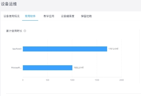 不过,当学校部署希沃集控系统后,陈老师发现一个很实用的功能。“希沃集控有一个数据分析的功能,能非常全面、客观地给我们量化且直观的反馈,这对我们评估设备和软件以及教师的使用情况和效果非常实用。”陈老师说。