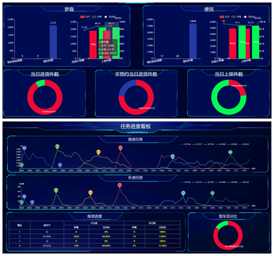 精确实时的可视化管理:搭建了一套物流统一可视化管理平台,让中百中央仓整套设备、系统不再是一个“黑盒子”,实现物流资源可溯、可视化,这也是中百项目最初的诉求。同时通天晓软件集中设置了各类监控看板,能实时掌握仓库运营动态,闪电锁定和快速解决异常,快速实时地提供数据分析,更是通过整合供应链信息、供应商送货及客户配送信息驱动物流中心入库、出库作业。