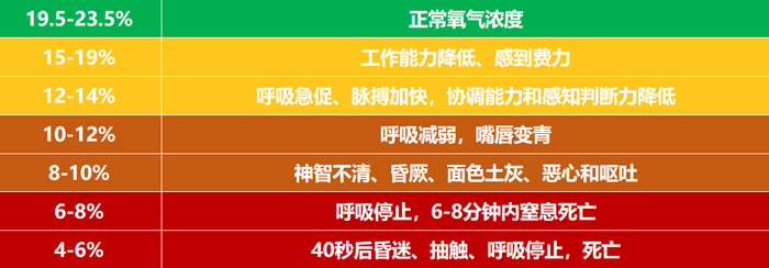 缺氧窒息:有限空间含氧量低,易发生缺氧窒息事故,其危害范围波及作业人员、监护人员以及救援人员,导致中毒昏迷,严重时甚至诱发窒息伤亡事故。