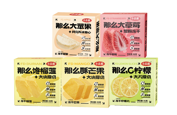 遵循这样的理念,好想你于2021年联合阿里重磅推出的“小冻粮”系列,一经推出就收到行业和消费者的关注。互联网化的产品名称、高标准的清洁标签,靓丽的包装只是吸引眼球的第一步。来自金牌产地,成熟度足够,营养最丰富的水果被好想你用冻干黑科技瞬时锁鲜,配料表只有原材料,别无其他,却最能为忙碌的现代人提供丰富的VC和膳食纤维。阿克苏苹果、金枕榴莲、台农芒果……除了配料表符合清洁标签,这些来自最好的原产地的原材料,在最佳成熟度被采摘,才是最难得的,是近乎“天选”的优质食材。